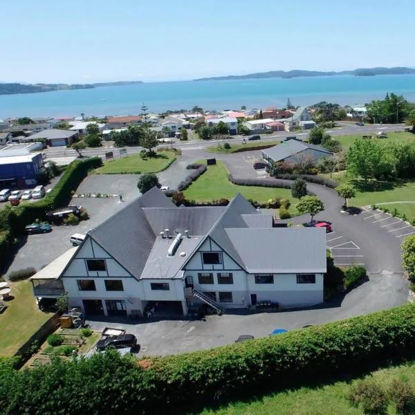 The hotel is in a great location, with views from the balcony to the sea, opposite several shops and restaurants and just down the road from a delicious Indian Restaurant The Spice Root, recommended by the manager, and the Salty Dog Inn. The rooms were spacious, comfortable and recently renovated. It was great value. It is also only a short distance back to Auckland and to Sandspit for the Royal Mail ferry.
